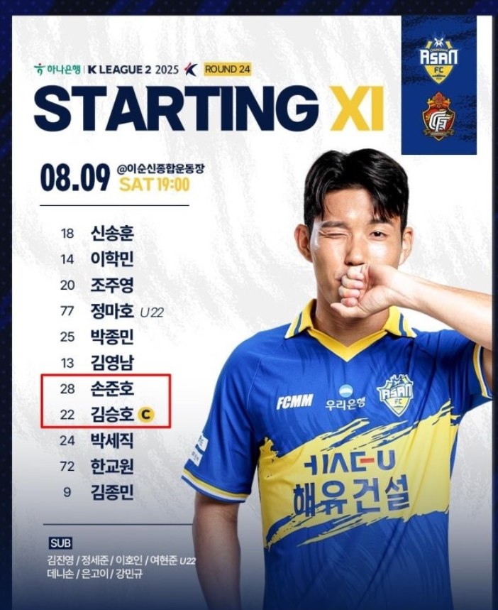 令人意外的是,在队长任命公布不到一周后,忠南牙山俱乐部就撤销了这一决定。最新一轮K2联赛对阵庆南队的比赛中,队长袖标并未佩戴在孙准浩手臂上,而是由22号球员金承浩担任场上队长。值得注意的是,俱乐部此前公布的队长架构中,孙准浩被列为第一队长,金综锡、金承浩、申松勋三人为副队长,而本场比赛这四名球员均首发出场。